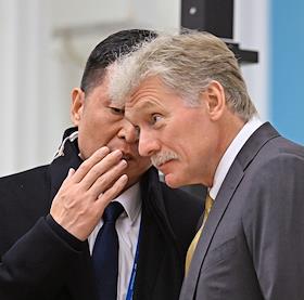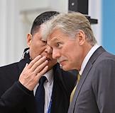 Встреча президента России Владимир Путина с главами делегаций, участниками заседания Совета глав правительств государств-членов Шанхайской организации сотрудничества (ШОС) в Екатерининском зале Сенатского дворца Кремля. Заместитель руководителя администрации президента России, пресс-секретарь президента Дмитрий Песков (справа) во время встречи.