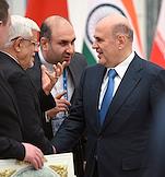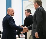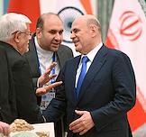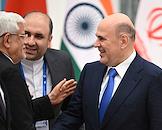 Встреча президента России Владимир Путина с главами делегаций, участниками заседания Совета глав правительств государств-членов Шанхайской организации сотрудничества (ШОС) в Екатерининском зале Сенатского дворца Кремля. Первый вице-президент Ирана Мохаммад Резо Ареф (слева) и председатель правительства России Михаил Мишустин (справа) перед началом встречи.