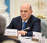 Встреча президента России Владимир Путина с главами делегаций, участниками заседания Совета глав правительств государств-членов Шанхайской организации сотрудничества (ШОС) в Екатерининском зале Сенатского дворца Кремля. Председатель правительства России Михаил Мишустин во время встречи.
