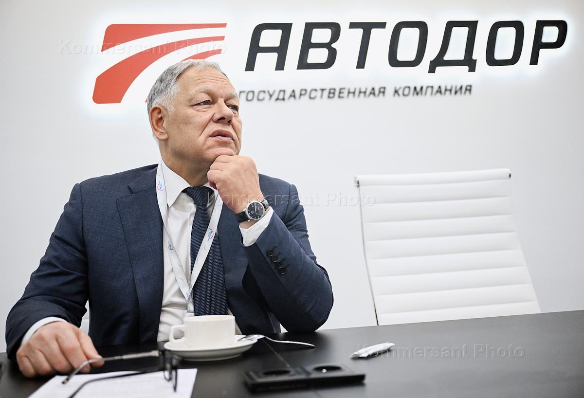 Transport Week 2025 at Gostiny Dvor. Avtodor Chairman of the Board Vyacheslav Petushenko during an interview.