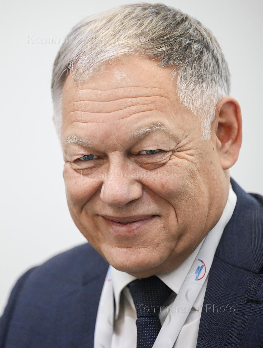 Transport Week 2025 at Gostiny Dvor. Avtodor Chairman of the Board Vyacheslav Petushenko during an interview. Genre photography.