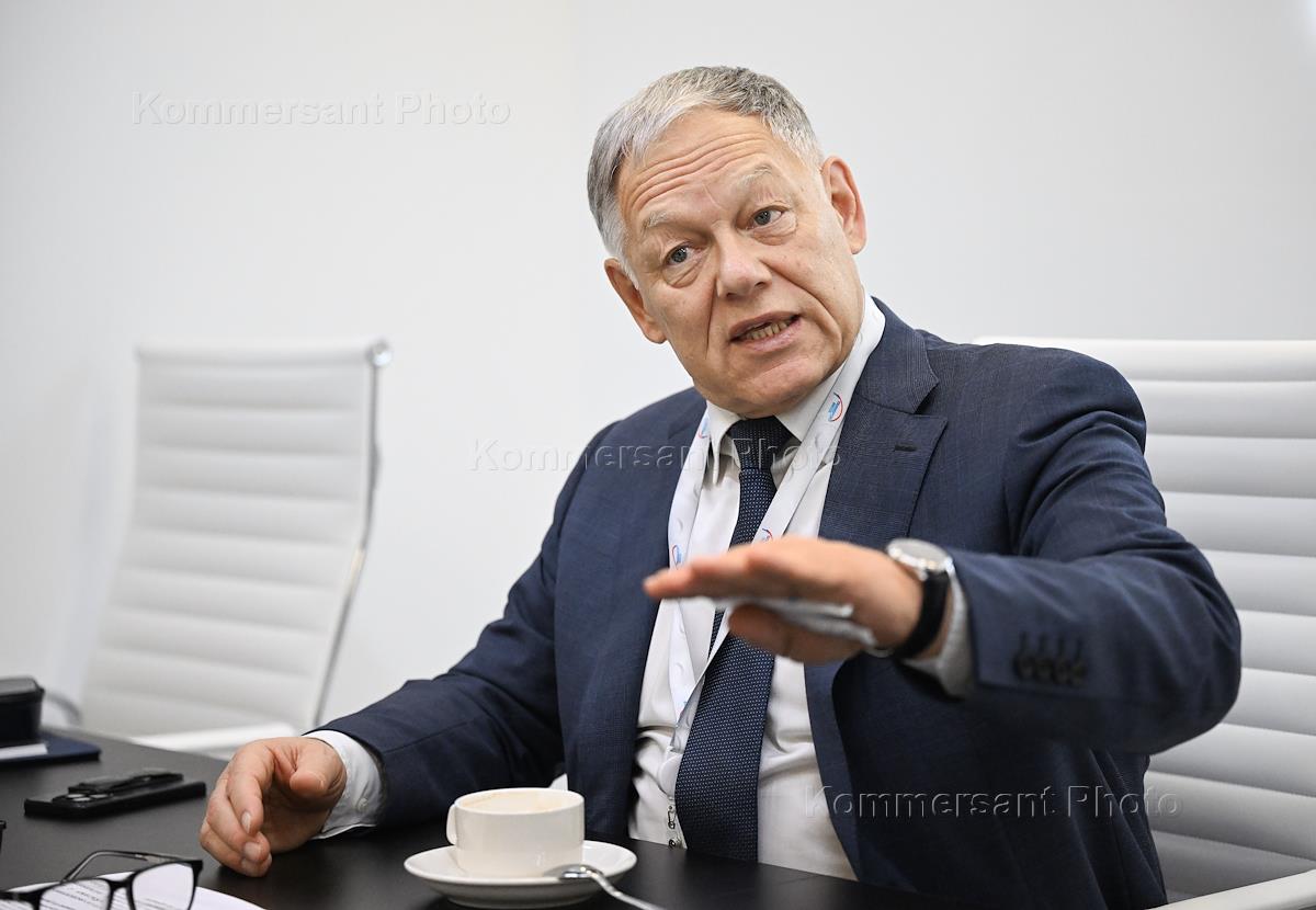 Transport Week 2025 at Gostiny Dvor. Avtodor Chairman of the Board Vyacheslav Petushenko during an interview. Genre photography.