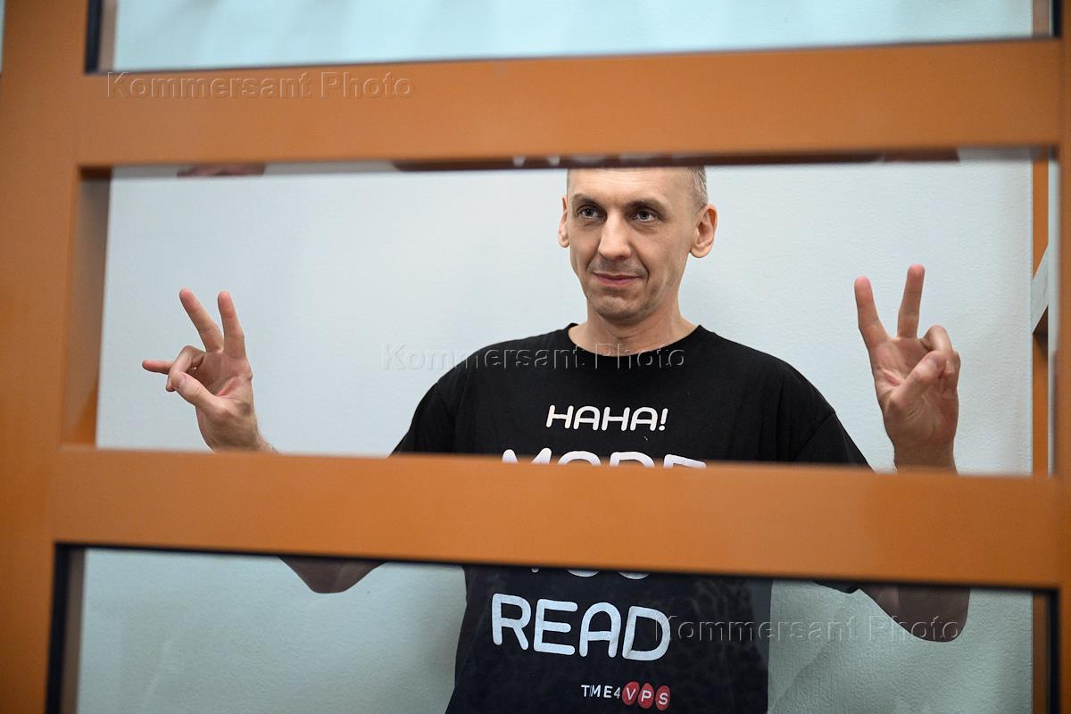 A court hearing for Kursk resident Vitaly Revin, accused of aiding terrorist activity, at the Second Western District Military Court. Defendant Vitaly Revin during the court hearing.