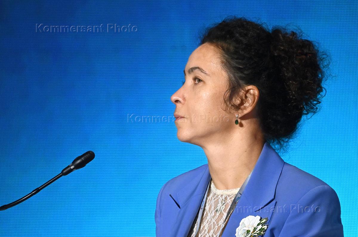 Транспортная неделя 2025. XIX Международный форум "Транспорт России" в Гостином дворе. Форсайт-сессия "Водный транспорт – интеграция и развитие. Трансформация водного транспорта. Новые возможности". Генеральный директор Объединенной вагонной компании Ирина Ольховская во время сессии.