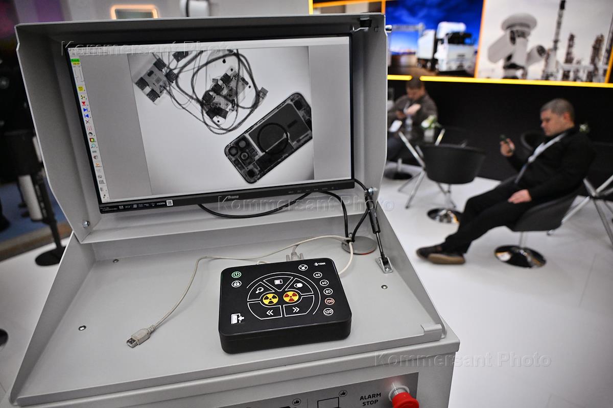 Транспортная неделя 2025. Выставка "Транспорт России" в Гостином дворе. Жанровая фотография. Стенд компании ООО "Диагностика-М", (торговая марка ТСНК). Экран интроскопа.