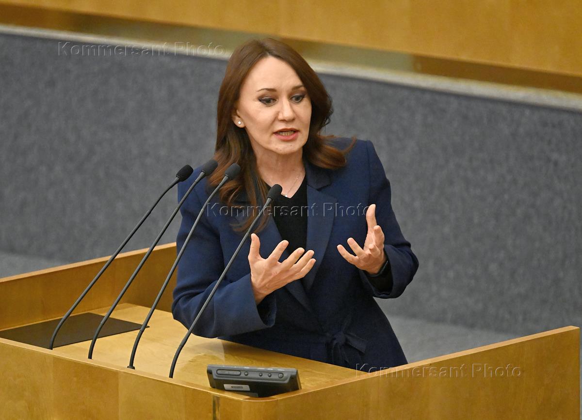 Пленарное заседание Государственной думы (ГД) России. Председатель комитета ГД России по защите семьи, вопросам отцовства, материнства и детства Нина Останина во время заседания.