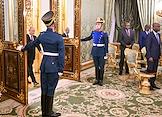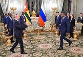 Встреча президента России Владимира Путина и председателя Совета министров Тоголезской Республики Фора Гнассингбе в зеленой гостиной Большого Кремлевского дворца. Члены делегации Тоголезской Республики перед началом встречи.