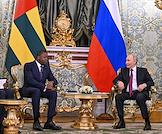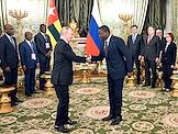 Встреча президента России Владимира Путина и председателя Совета министров Тоголезской Республики Фора Гнассингбе в зеленой гостиной Большого Кремлевского дворца. Президент России Владимир Путин (слева) и председатель Совета министров Тоголезской Республики Фор Гнассингбе (справа) во время встречи.