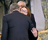 Встреча президента России Владимира Путина и председателя Совета министров Тоголезской Республики Фора Гнассингбе в зеленой гостиной Большого Кремлевского дворца. Председатель Центрального Банка России Эльвира Набиуллина перед началом встречи.