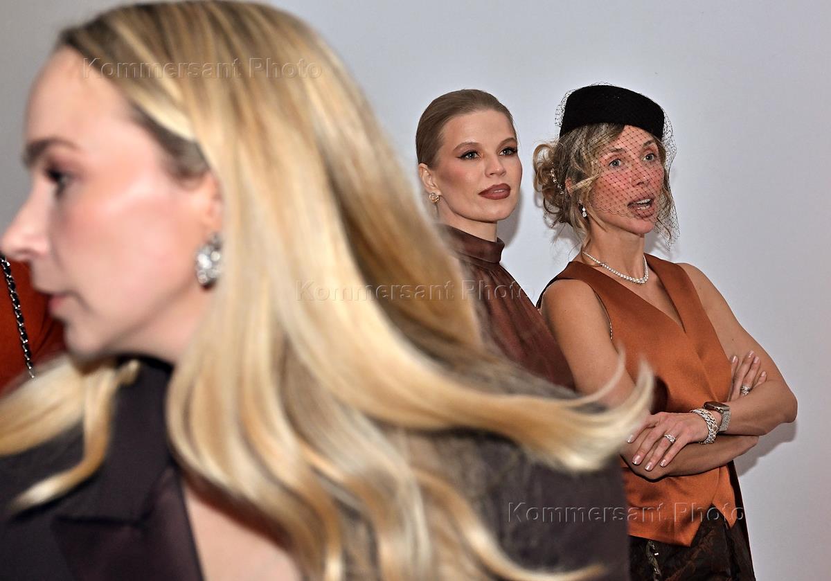Перфоманс Deja Vu, который представил Mental&body concierge Helms, в особняке на Волхонке. Гости на перфомансе. Сооснователь и управляющий партнер агентства "Управление пониманием" Анастасия Таратина (слева) и автор идеи и продюсер мультижанрового перформанса Deja Vu от клуба здоровья и красоты Helms Александра Ким (в центре) на перфомансе.