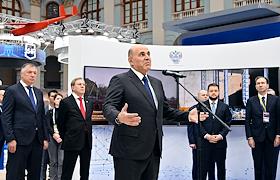 Транспортная неделя 2025. XIX Международный форум и выставка "Транспорт России" в Гостином дворе. Председатель правительства России Михаил Мишустин на выставке.