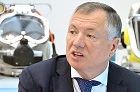 Транспортная неделя 2025. XIX Международный форум и выставка "Транспорт России" в Гостином дворе. Руководитель Федерального агентства морского и речного транспорта (Росморречфлот) Андрей Тарасенко на выставке.