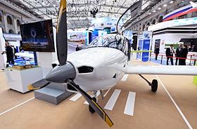 Транспортная неделя 2025. XIX Международный форум и выставка "Транспорт России" в Гостином дворе. Обновленный вариант своего легкомоторного самолета Tango на стенде компании Spectra Aircraft (входит в S7 Group).