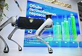 Транспортная неделя 2025. XIX Международный форум и выставка "Транспорт России" в Гостином дворе. Жанровая фотография. Робот-собака на выставке.