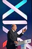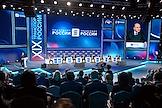 Транспортная неделя 2025. XIX Международный форум и выставка "Транспорт России" в Гостином дворе. Пленарная дискуссия "Транспортная инфраструктура. Баланс государственных и частных интересов". Председатель правительства России Михаил Мишустин во время выступления на дискуссии.