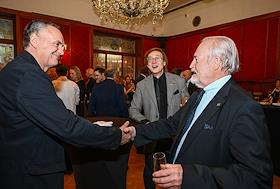 Торжественная церемония вручения премии "Событие года" журнала "Кинорепортер" за наиболее значимые достижения в сфере кино и телевидения в России в гостинице "Метрополь". Художник, сценарист, кинорежиссер Александр Адабашьян (слева) и режиссер Дмитрий Астрахан (справа) на церемонии.