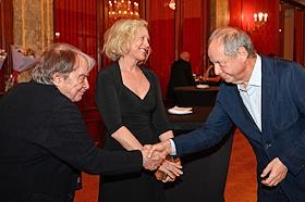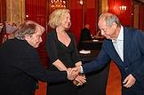 Торжественная церемония вручения премии "Событие года" журнала "Кинорепортер" за наиболее значимые достижения в сфере кино и телевидения в России в гостинице "Метрополь". Актеры Валентина (Тина) Стойилкович (справа), Павел Табаков (слева) и генеральный директор телекомпании "Первый канал" Константин Эрнст (в центре) на церемонии.