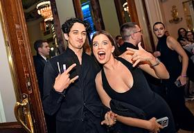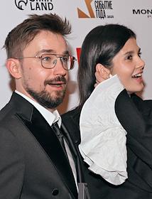 Торжественная церемония вручения премии "Событие года" журнала "Кинорепортер" за наиболее значимые достижения в сфере кино и телевидения в России в гостинице "Метрополь". Актеры Елизавета Ищенко (слева) и Кузьма Сапрыкин (справа) на церемонии.