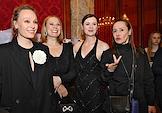 Торжественная церемония вручения премии "Событие года" журнала "Кинорепортер" за наиболее значимые достижения в сфере кино и телевидения в России в гостинице "Метрополь". Слева направо актрисы: Ольга Ломоносова, Дина Корзун, Дарья Калмыкова и Евгения Дмитриева на церемонии.