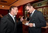 Торжественная церемония вручения премии "Событие года" журнала "Кинорепортер" за наиболее значимые достижения в сфере кино и телевидения в России в гостинице "Метрополь". Генеральный директор телекомпании "Первый канал" Константин Эрнст (слева) и генеральный продюсер компании "Кинослово" Петр Ануров (справа) на церемонии.