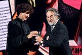 Торжественная церемония вручения премии "Событие года" журнала "Кинорепортер" за наиболее значимые достижения в сфере кино и телевидения в России в гостинице "Метрополь". Певец Алексей Воробьев (слева) и оперная певица Аида Гарифуллина (справа) на церемонии.