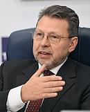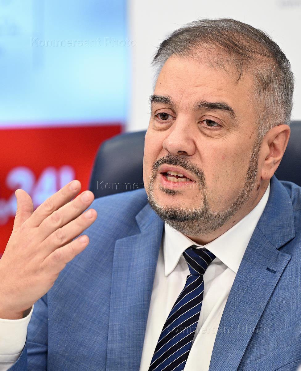 Открытое заседание Научного совета Российской академии наук (РАН) "Науки о жизни", посвященное персонализированным подходам в терапии онкологии, в пресс-центре ТАСС. Главный врач Федерального государственного бюджетного учреждения "Федеральный научно-клинический центр физико-химической медицины имени академика Ю.М. Лопухина Федерального медико-биологического агентства" по лечебной работе Андрей Мещеряков во время заседания.