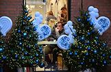 Виды Москвы. Жанровая фотография. Новогодние украшения перед окном ресторана в квартале Lucky.