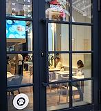 Виды Москвы. Жанровая фотография. Значок "можно с домашними питомцами" на входной двери ресторана в квартале Lucky.