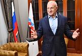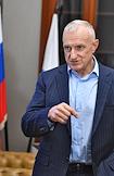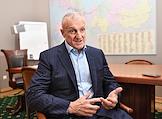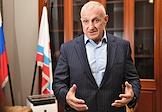 Вице-губернатор Ленинградской области по вопросам транспорта и ТЭК Денис Седов во время интервью в рабочем кабинете.
