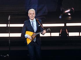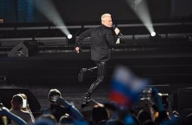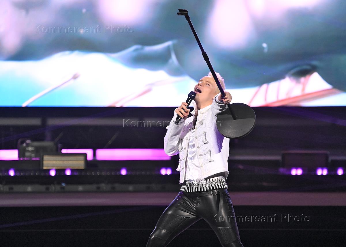 Концерт "SHAMAN. 30 лет на сцене" на сцене Государственного Кремлевского дворца. Певец SHAMAN (Ярослав Дронов) во время выступления.