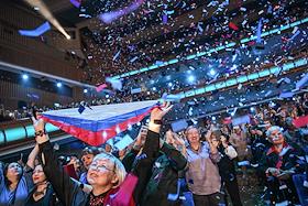 Концерт "SHAMAN. 30 лет на сцене" на сцене Государственного Кремлевского дворца. Зрители во время концерта.