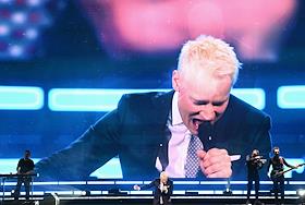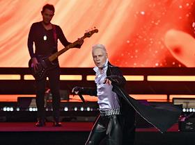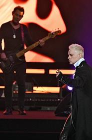 Концерт "SHAMAN. 30 лет на сцене" на сцене Государственного Кремлевского дворца. Певцы SHAMAN (Ярослав Дронов) (слева) и Никита Осин (справа) во время выступления.