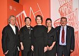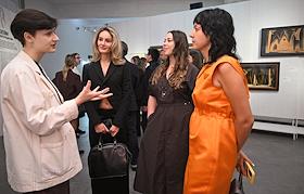 День рождения Центра "Зотов" и превью выставки "Татлин. Конструкция мира". Президент группы компаний Unident Тамаз Манашерова (в центре) и вице-президент группы компаний Unident Ивета Манашерова (слева) во время мероприятия.