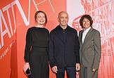 День рождения Центра "Зотов" и превью выставки "Татлин. Конструкция мира". Архитектор, дизайнер, куратор Юрий Аввакумов (слева), генеральный директор Центра "Зотов" Дарья Филиппова (в центре) и куратор выставочного направления Центра "Зотов" Полина Стрельцова (вторая справа) во время мероприятия.