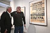 День рождения Центра "Зотов" и превью выставки "Татлин. Конструкция мира". Художник Александр Пономарев (справа) во время мероприятия.
