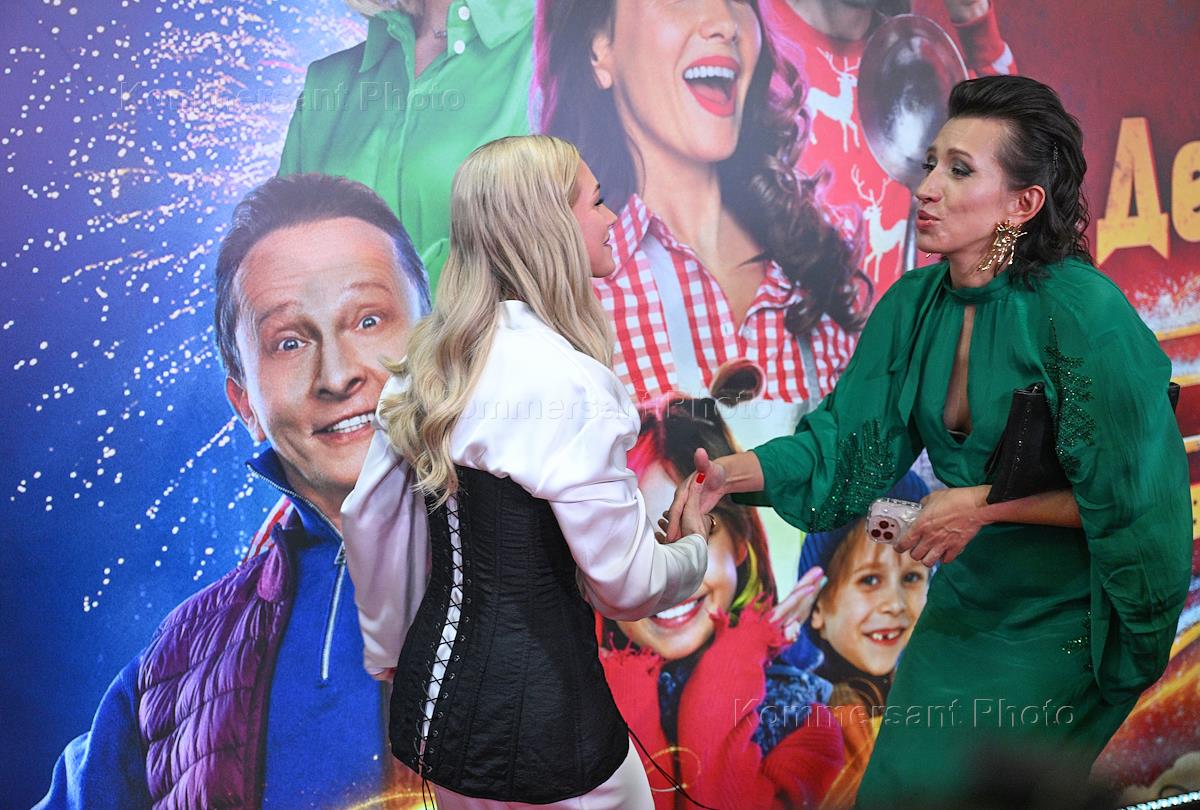 Премьерный показ новогодней семейной комедии "Письмо Деду Морозу" в кинотеатре "Каро 11 Октябрь". Актриса Кристина Асмус (слева) и телеведущая Елена Борщева (справа) на премьере.