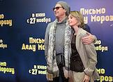 Премьерный показ новогодней семейной комедии "Письмо Деду Морозу" в кинотеатре "Каро 11 Октябрь". Балетмейстер Сергей Филин (слева) и его супруга балерина Мария Прорвич (справа) на премьере.