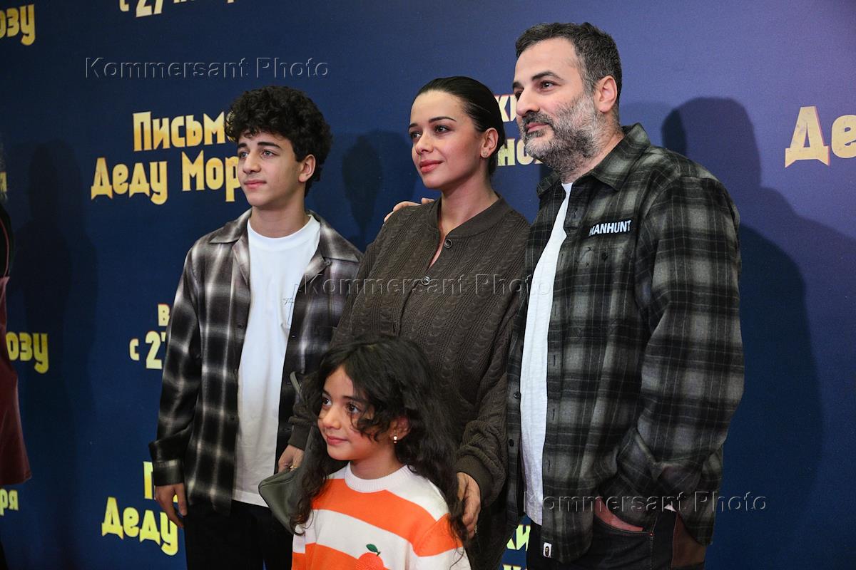 Премьерный показ новогодней семейной комедии "Письмо Деду Морозу" в кинотеатре "Каро 11 Октябрь". Актер, продюсер Гевонд Андреасян (справа) с семьей на премьере.