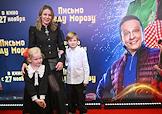 Премьерный показ новогодней семейной комедии "Письмо Деду Морозу" в кинотеатре "Каро 11 Октябрь". Актриса Александра Ребенок с сыном Иваном и дочерью Верой на премьере.