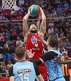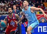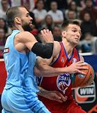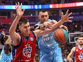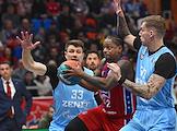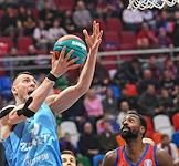 Единая лига ВТБ по баскетболу. Матч между командами ЦСКА (Москва) - "Зенит" (Санкт-Петербург) на стадионе "Мегаспорт". Игрок команды "Зенит" Лука Шаманич (справа) во время матча.