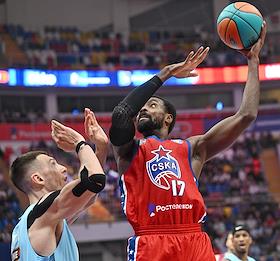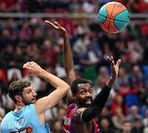 Единая лига ВТБ по баскетболу. Матч между командами ЦСКА (Москва) - "Зенит" (Санкт-Петербург) на стадионе "Мегаспорт". Игрок команды ЦСКА Каспер Уэйр (в центре) во время матча.