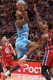 Единая Лига ВТБ. Матч по баскетболу между командами ЦСКА (Москва) - "Зенит" (Санкт-Петербург) на арене "Мегаспорт". Игрок команды ЦСКА Мело Тримбл (слева) во время матча.