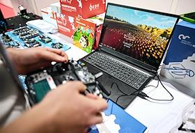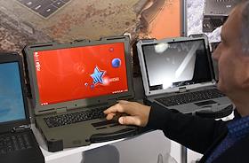 IV Международная выставка-форум "Электроника России" в МВЦ "Крокус Экспо". Жанровая фотография. Стенд компании Cyberbook. Защищенные ноутбуки.