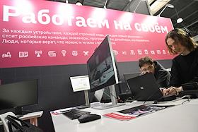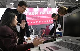 IV Международная выставка-форум "Электроника России" в МВЦ "Крокус Экспо". Жанровая фотография. Стенд интерактивного научно-технического музея "Кибер-музей". Информационно-справочная система "Мир".