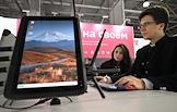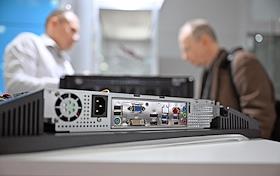 IV Международная выставка-форум "Электроника России" в МВЦ "Крокус Экспо". Жанровая фотография. Стенд компании "Билтех" - производителя сенсорных мониторов и компьютерного оборудования для промышленности.