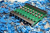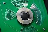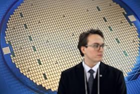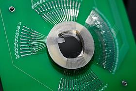 IV Международная выставка-форум "Электроника России" в МВЦ "Крокус Экспо". Жанровая фотография. Пластина с кристаллами заказных элементов.