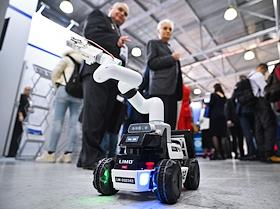 IV Международная выставка-форум "Электроника России" в МВЦ "Крокус Экспо". Жанровая фотография. Робот-гуманоид ИТ-компании 3Logic Group.