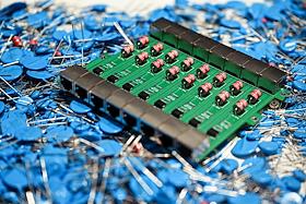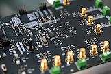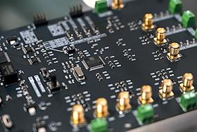 IV Международная выставка-форум "Электроника России" в МВЦ "Крокус Экспо". Жанровая фотография. Многослойная печатная плата (МПП) из однородных СВЧ диэлектриков.