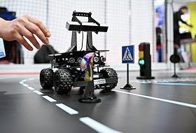 IV Международная выставка-форум "Электроника России" в МВЦ "Крокус Экспо". Жанровая фотография. Стенд Академии Высоких Технологий. АЙКАР - конструктор беспилотного автомобиля на базе компьютерного зрения для обучения старшеклассников и студентов работе с технологиями искусственного интеллекта.