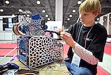 IV Международная выставка-форум "Электроника России" в МВЦ "Крокус Экспо". Жанровая фотография. Посетитель на стенде интерактивного научно-технического музея "Кибер-музей".